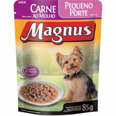 O Sachê Magnus Todo Dia para Cães Adultos de Porte Pequeno sabor Carne ao Molho é um alimento úmido delicioso que pode ser oferecido como um agrado, petisco ou recompensa.